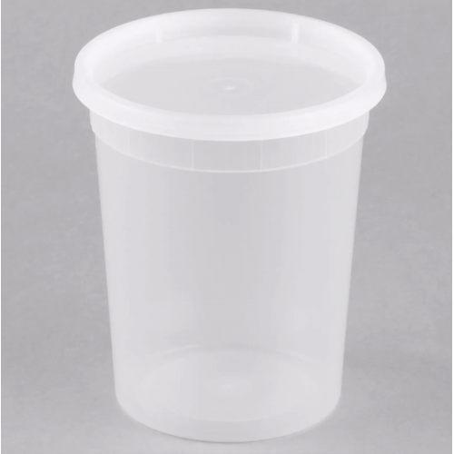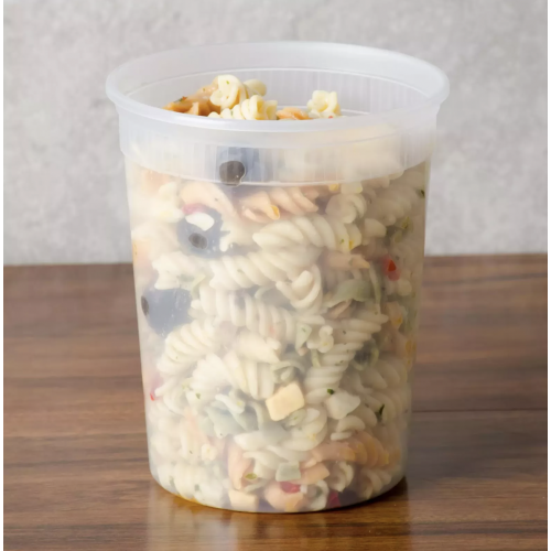 • 32 oz Microwavable Translucent Plastic Deli Container and Lid