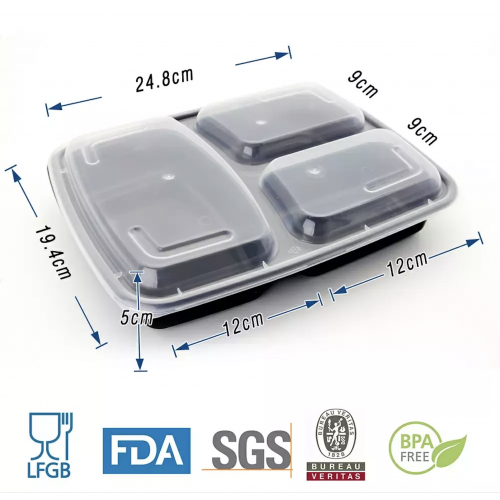 • 38oz Meal Prep Containers, 3 Compartment with Lids